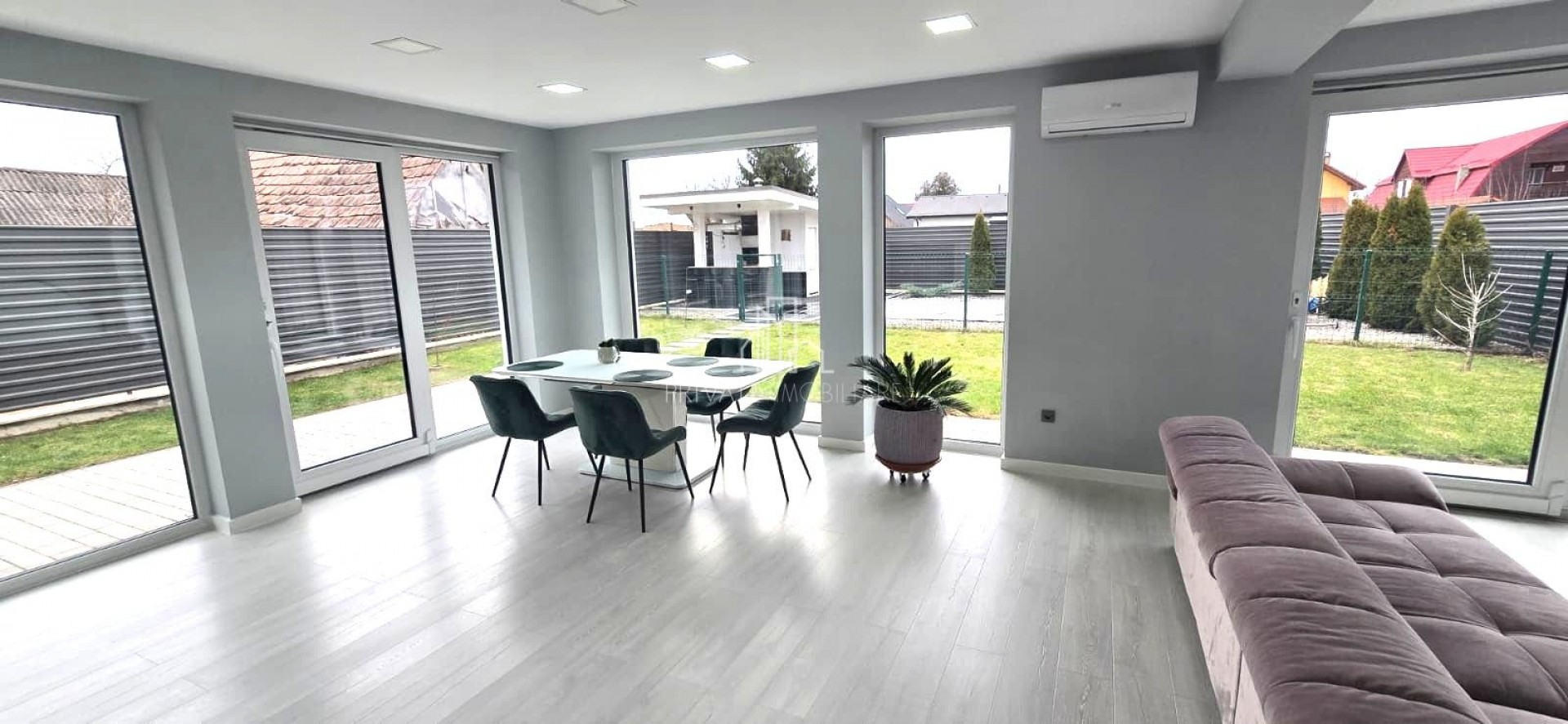 The house is located in Sangeorgiu de Mures, opening to a quiet and paved street, on a straight spot. The house has a built area of 190 sqm, the usable area being 145 sqm and the land is 628 sqm. Built in 2021.